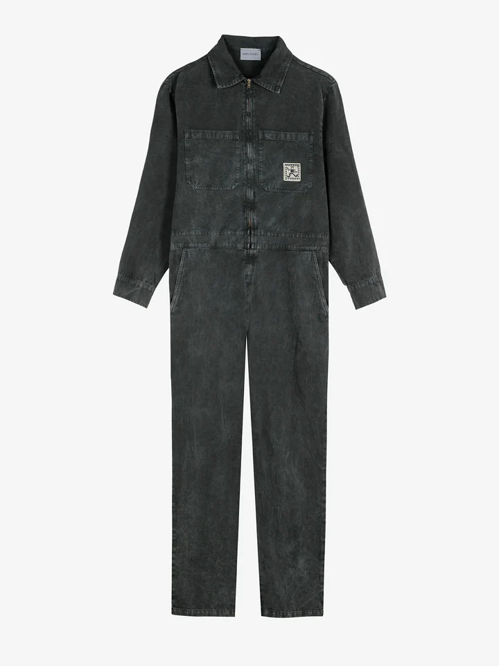 Dark heather grey overall. Designed with cut for a straight-leg fit, designed for a comfortable fit, maxi length, non stretchy fabric and designed with pockets. Fits true to size, take your normal size. Made in Spain.